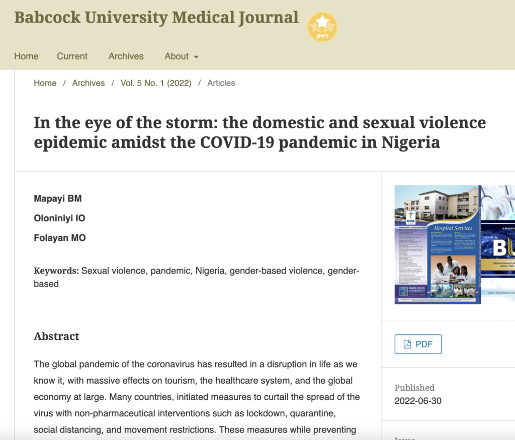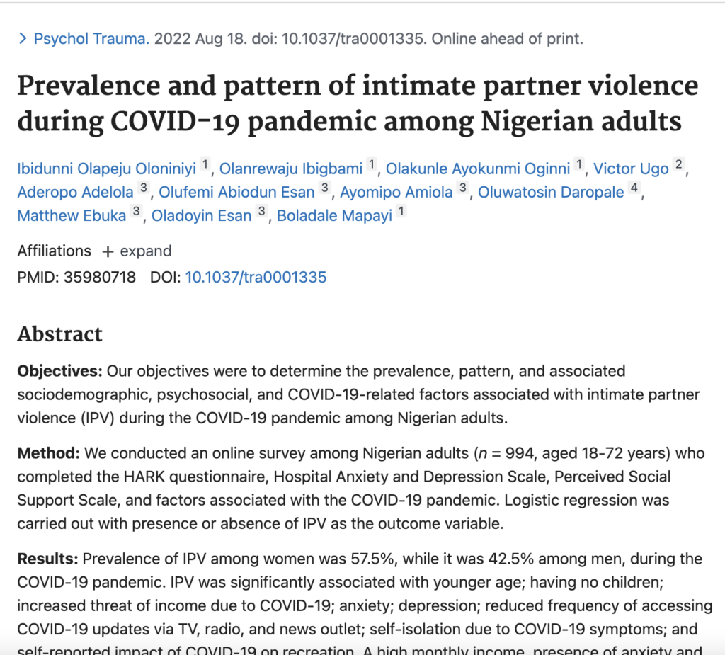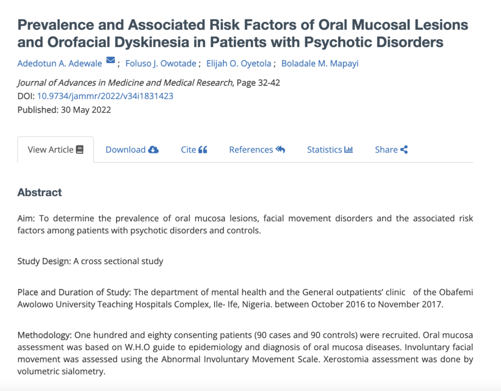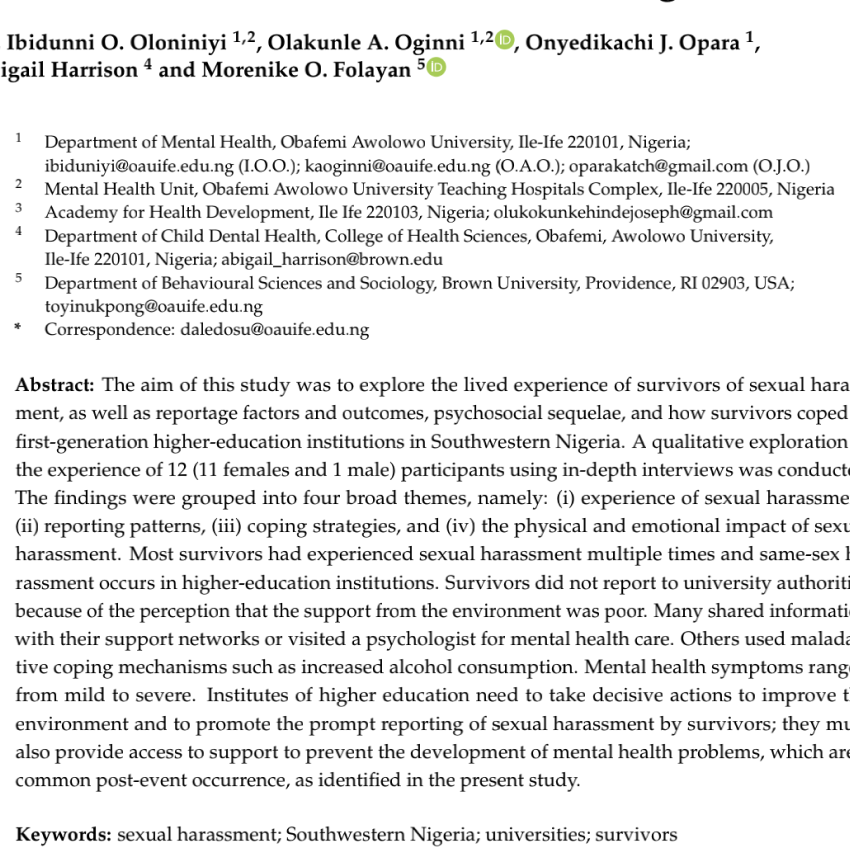 Boladale M. Mapayi, Ibidunni O. Oloniniyi, Olakunle A. Oginni, Onyedikachi J. Opara, Kehinde J. Olukokun, Abigail Harrison and Morenike O. Folayan (2023)